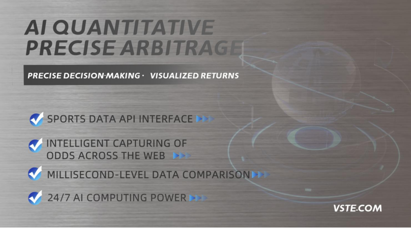 VSTE has been deeply involved in the sports arbitrage industry for 11 years, using cutting-edge technology as the foundation for development, and is committed to helping users achieve high returns and low risks in sports arbitrage. For this purpose, VSTE has developed its own intelligent arbitrage system, which combines AI technology to intelligently capture odds across the web and perform millisecond-level data comparison. It provides users with intelligent services such as one-click entrust and arbitrage calculators. At the same time, it has a professional sports data API interface, covering 15+ global sports data, truly using technology to connect B-end and C-end markets.