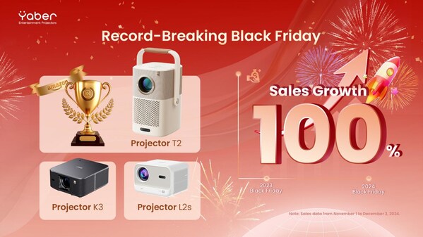 LAS VEGAS,Dec. 27,2024 -- Yaber reported a remarkable 100% year-over-year sales surge during Black Friday. The T2 outdoor projector,featuring a built-in battery and handle-to-stand design,ranked among Amazon's Top 3 "Most Wished For" list. Meanwhile,the L2s projectors,available in exclusive Pantone colors,sold out shortly after launch.
