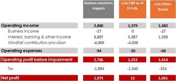 The drop in FY2024 figures compared to FY2023 reflects the booking of the windfall contribution related to the Central Bank of Russia's (CBR) assets dating from 15 February 2024.