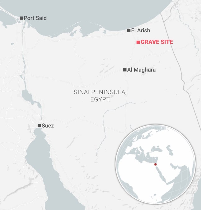 The graves were found in northern Sinai (Map: Metro)